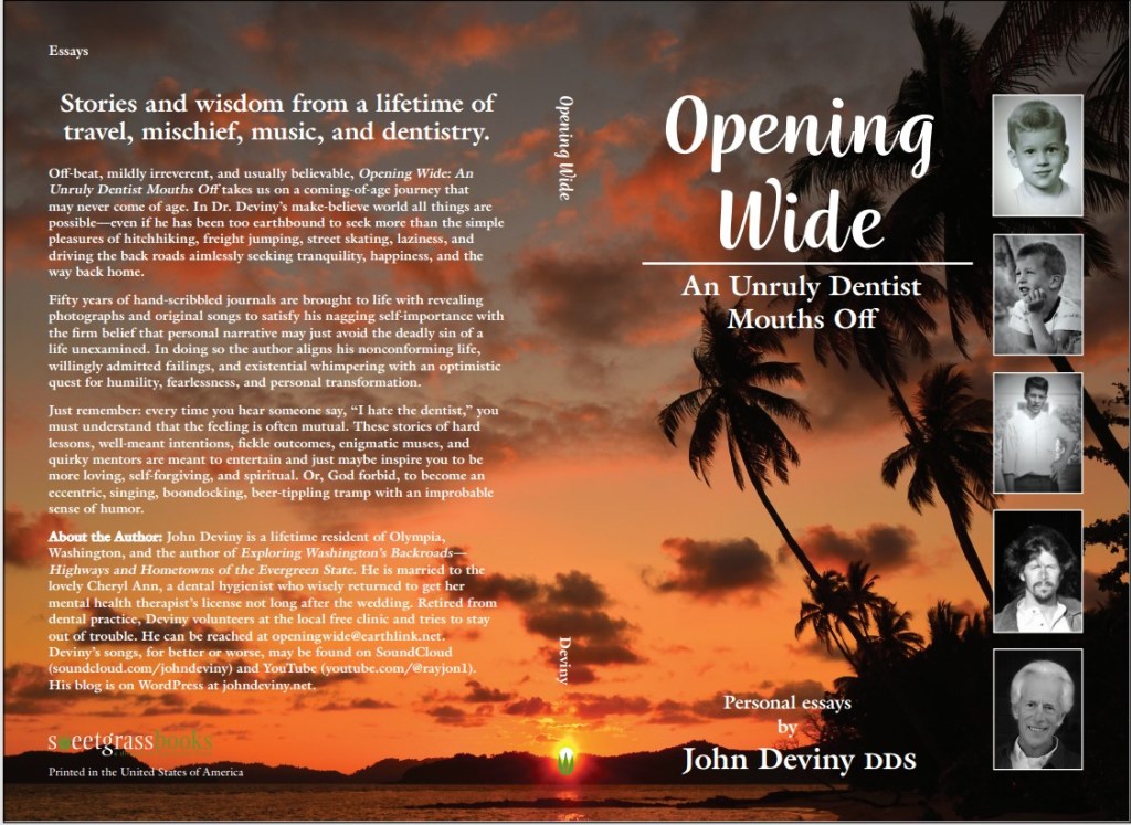 Announcing the release of Opening Wide: An Unruly Dentist Mouths Off! A wise and witty collection of personal essays –highlighted with original songs — that have much more to do with seeking and finding life fulfilment than how to brush and floss! You can find out more about and order this colorful, high-quality softcover book at Amazon.com Price: $17.75 Free shipping for Prime members. Kindle ebook now $2.99